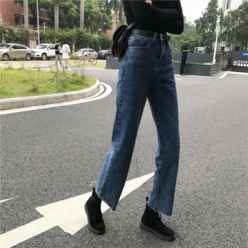 時尚復古高腰牛仔褲女秋2018新款韓版寬松顯瘦闊腿直筒牛仔長褲潮