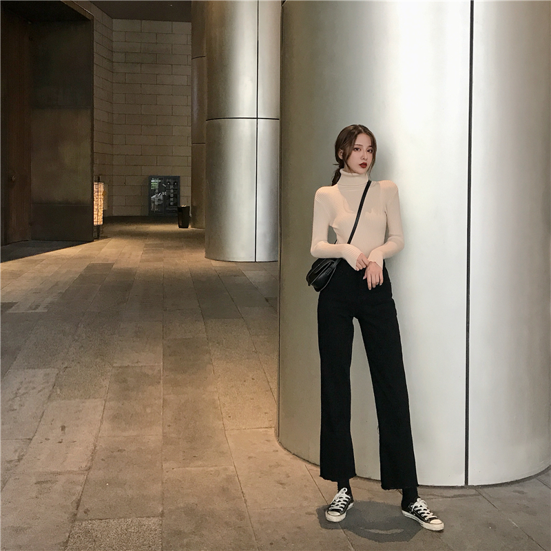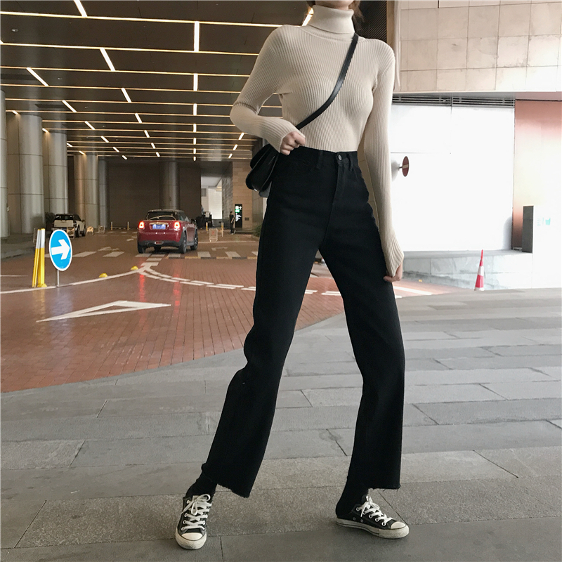 港味復古chic風褲子女秋冬2018新款高腰時尚百搭顯瘦直筒牛仔褲女