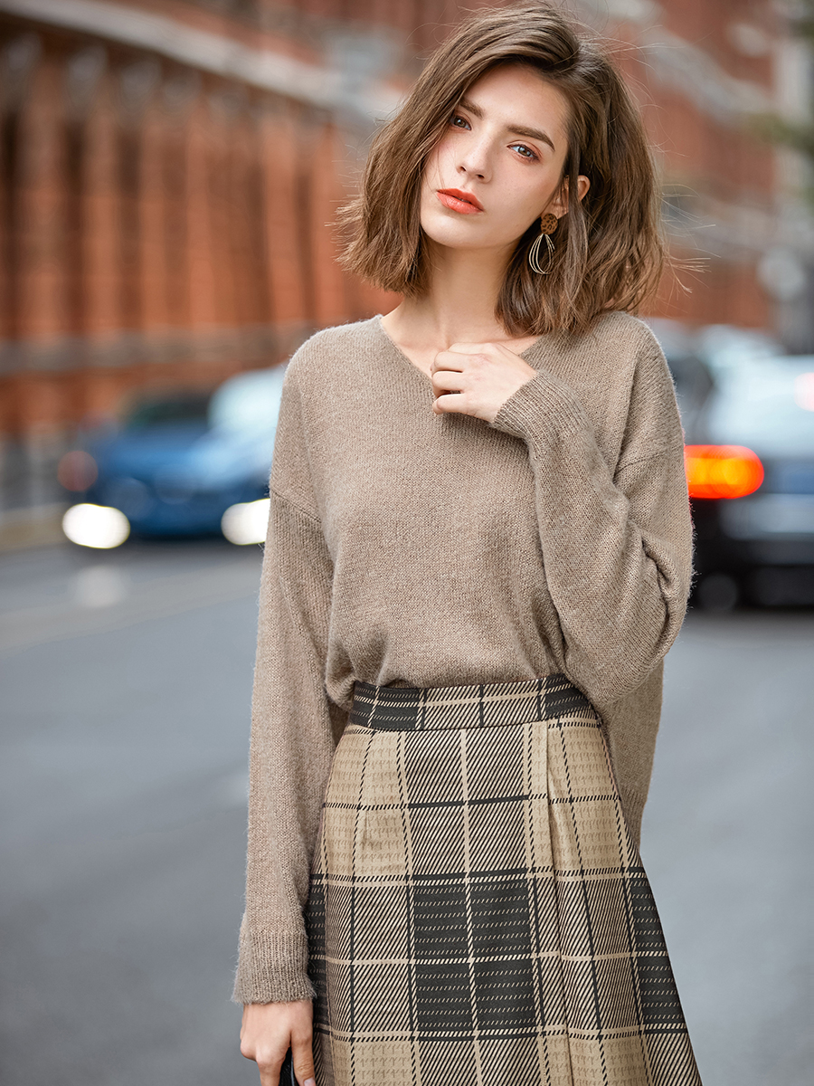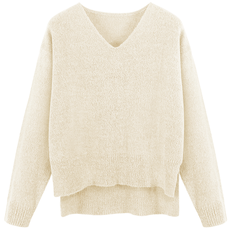 MG小象慵懶風套頭毛衣女長袖寬松v領上衣2018新款冬季學生針織衫