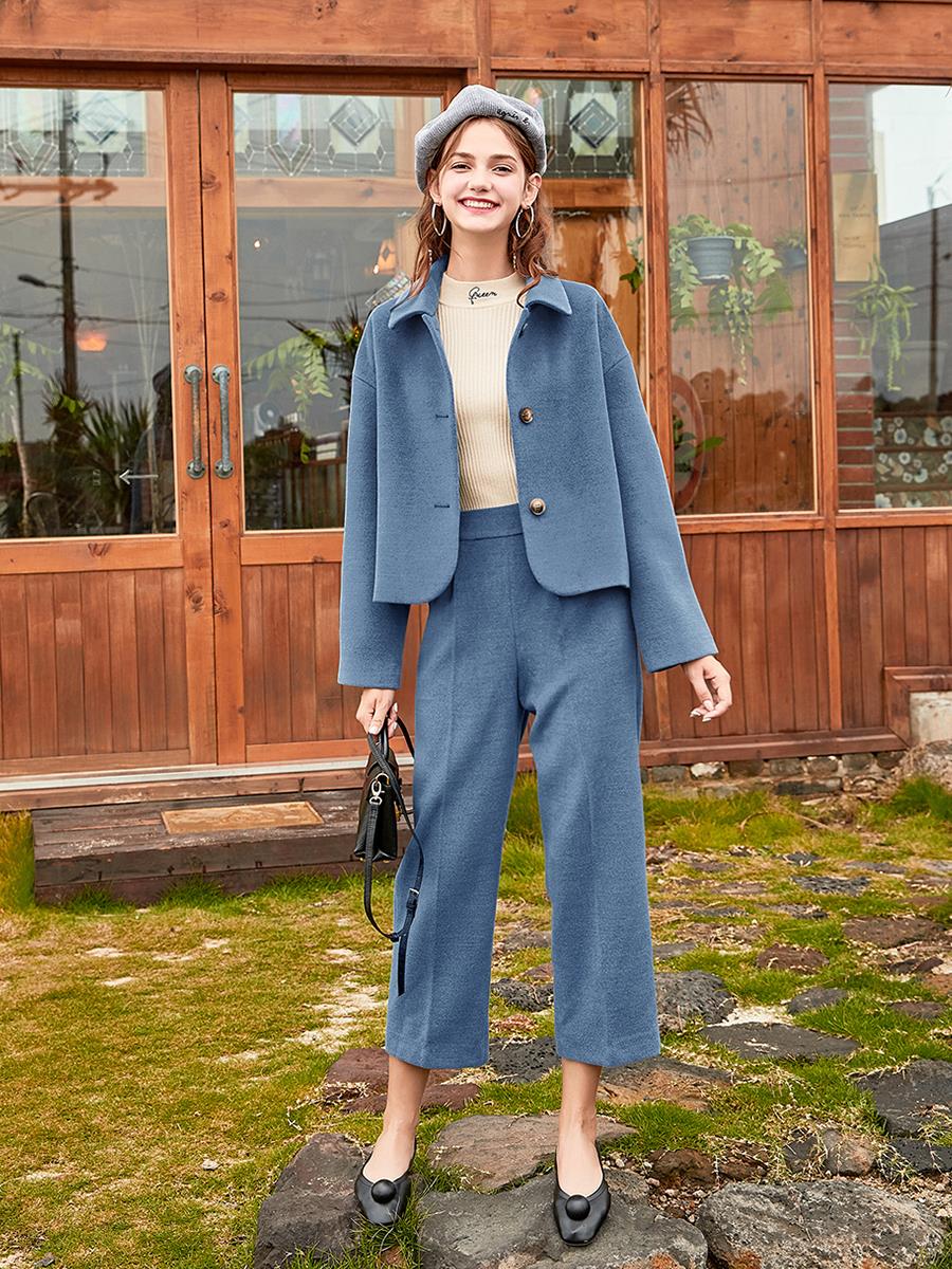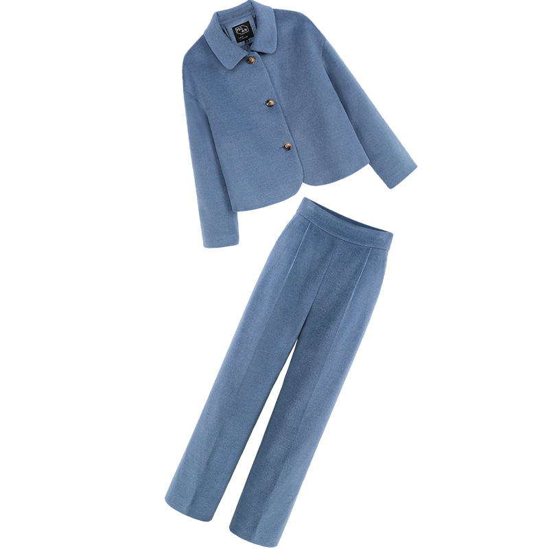 MG小象高腰休閑褲女秋冬2018新款寬松短外套時尚顯瘦chic直筒褲子