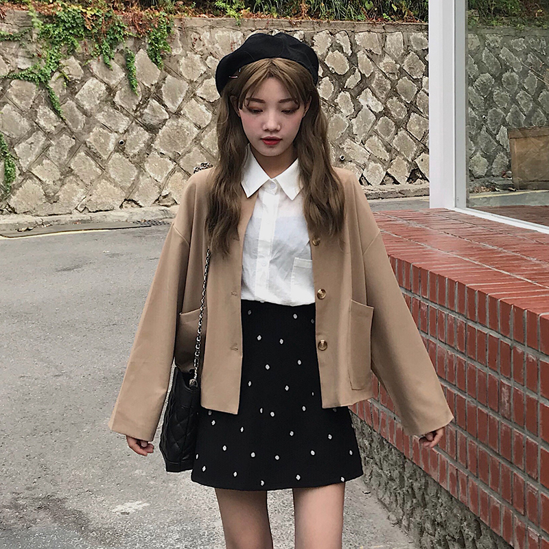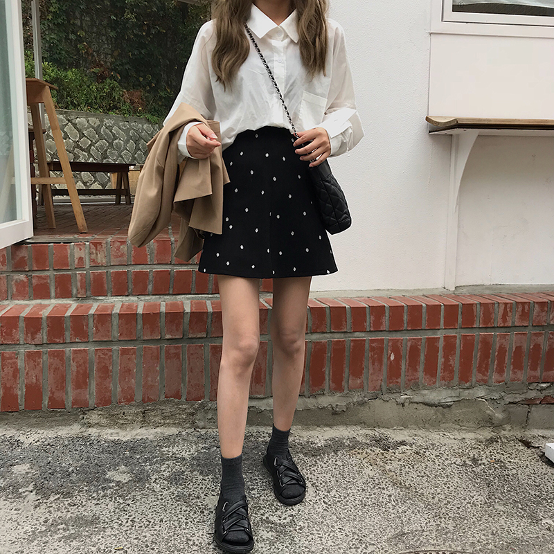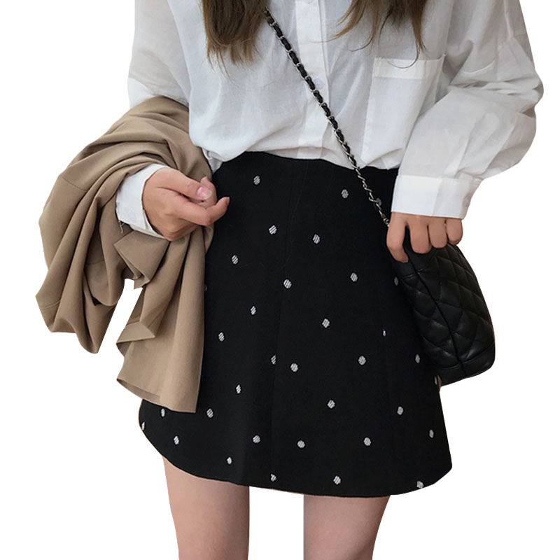 / 秋季韓版寬松氣質波點A字裙半身裙高腰顯瘦包臀裙短裙學生裙子女