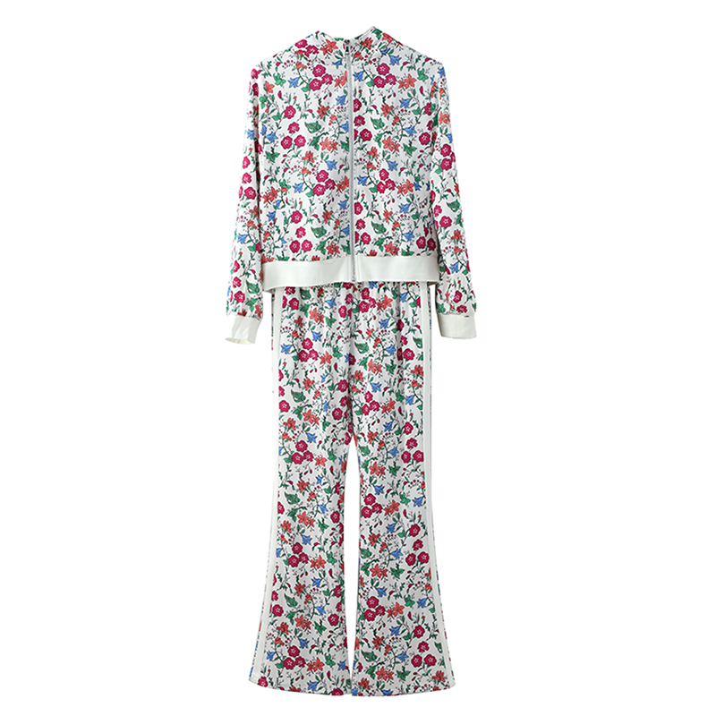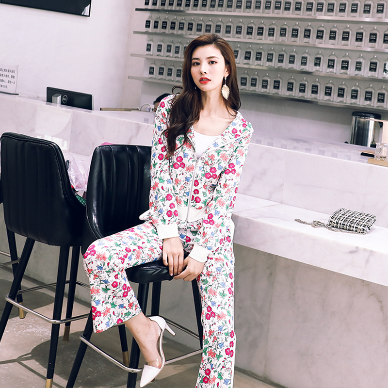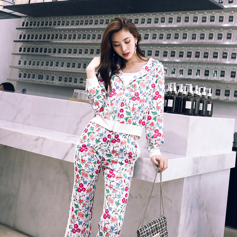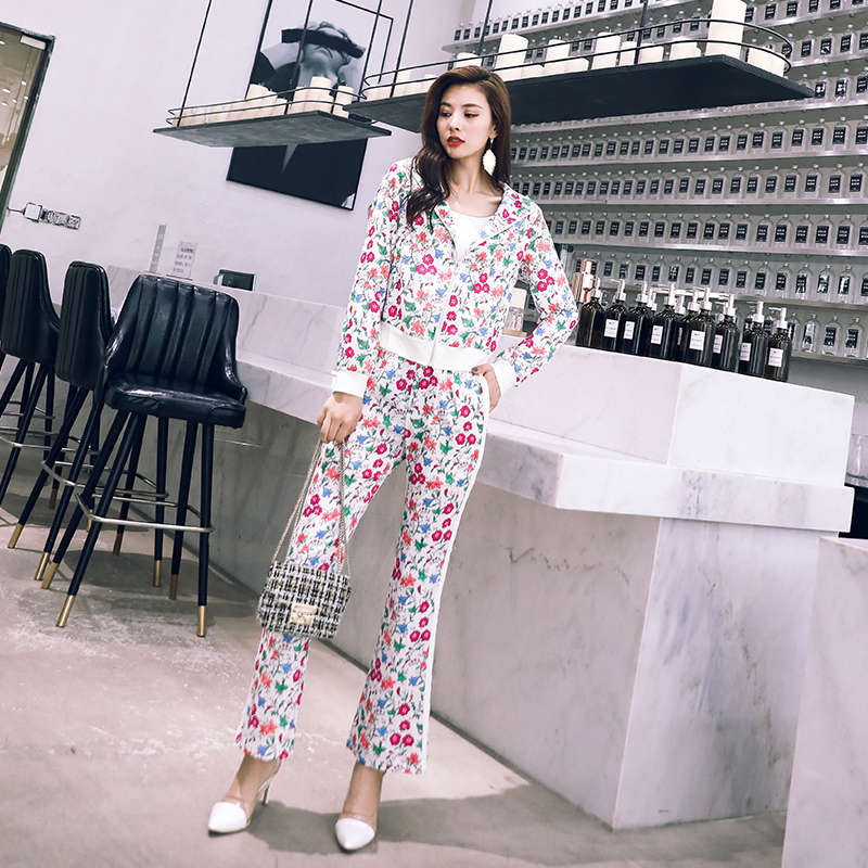 / 運動套裝女春秋兩件套2018新款印花休閑時尚寬松棒球服開衫長褲潮