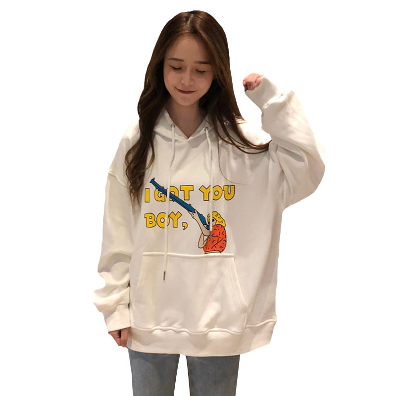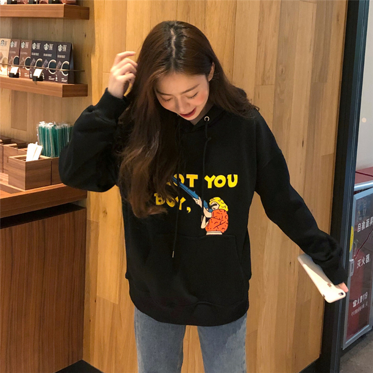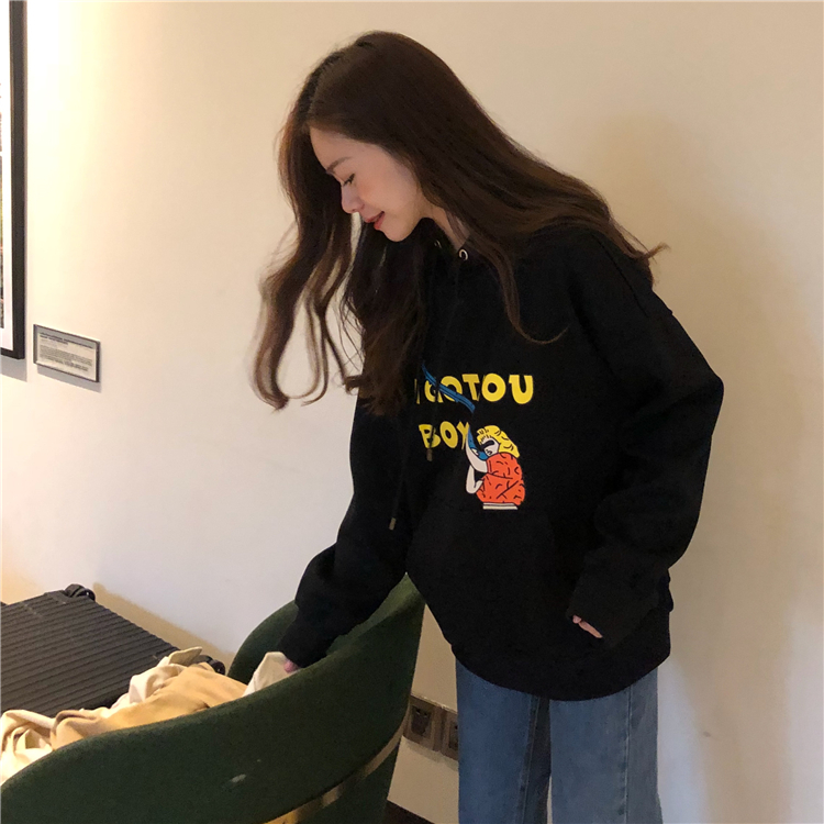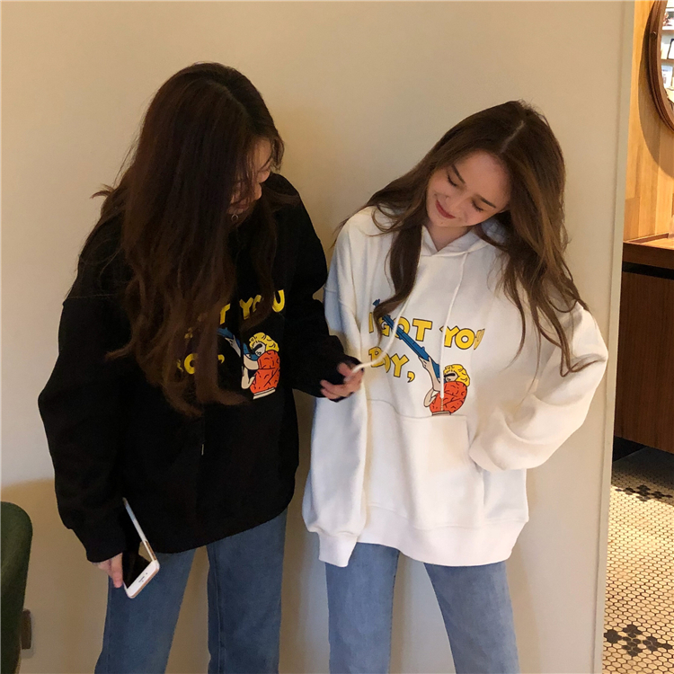 / 秋冬韓版原宿風寬松卡通加絨加厚連帽pp home超火衛衣上衣外套女
