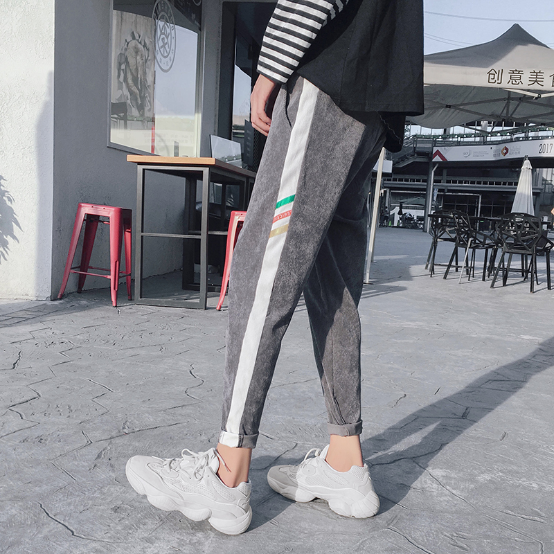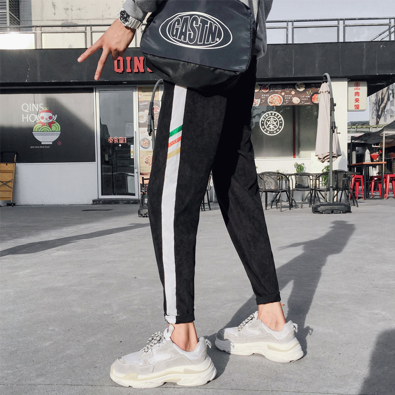 / 秋季精神小伙褲子休閑褲韓版潮流薄款男士九分褲運動褲國潮小腳褲