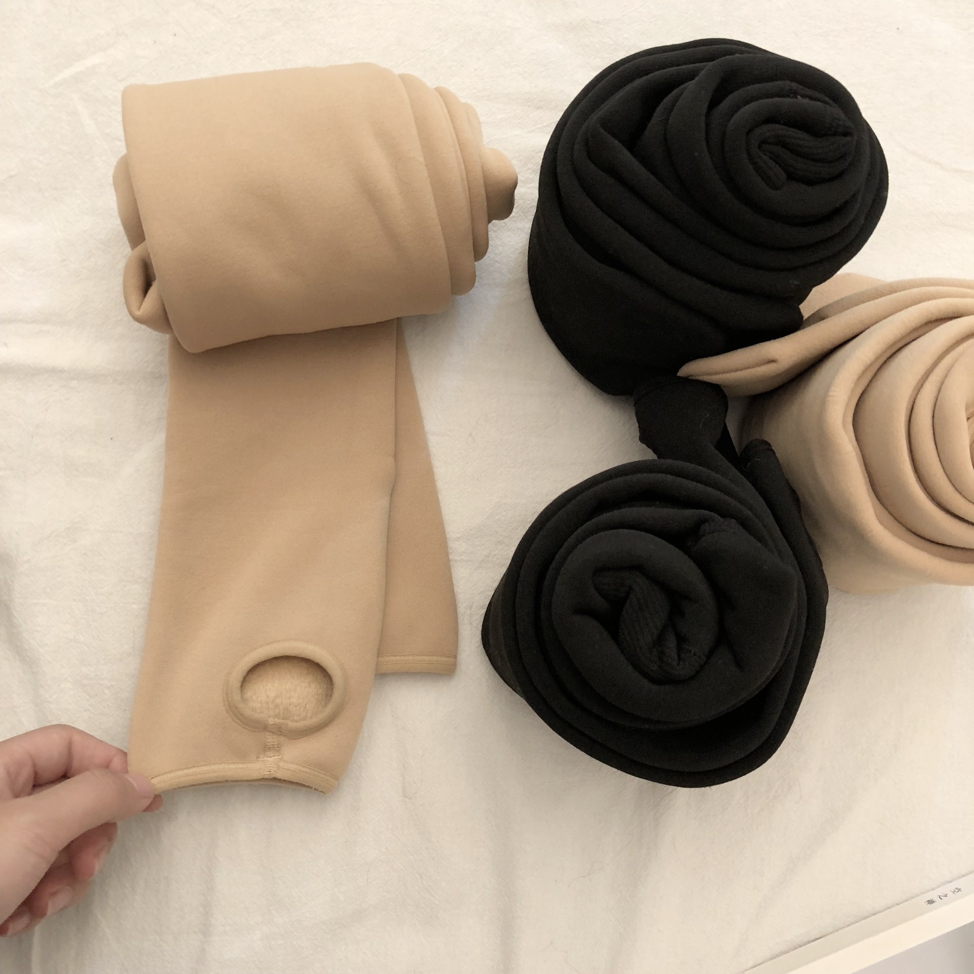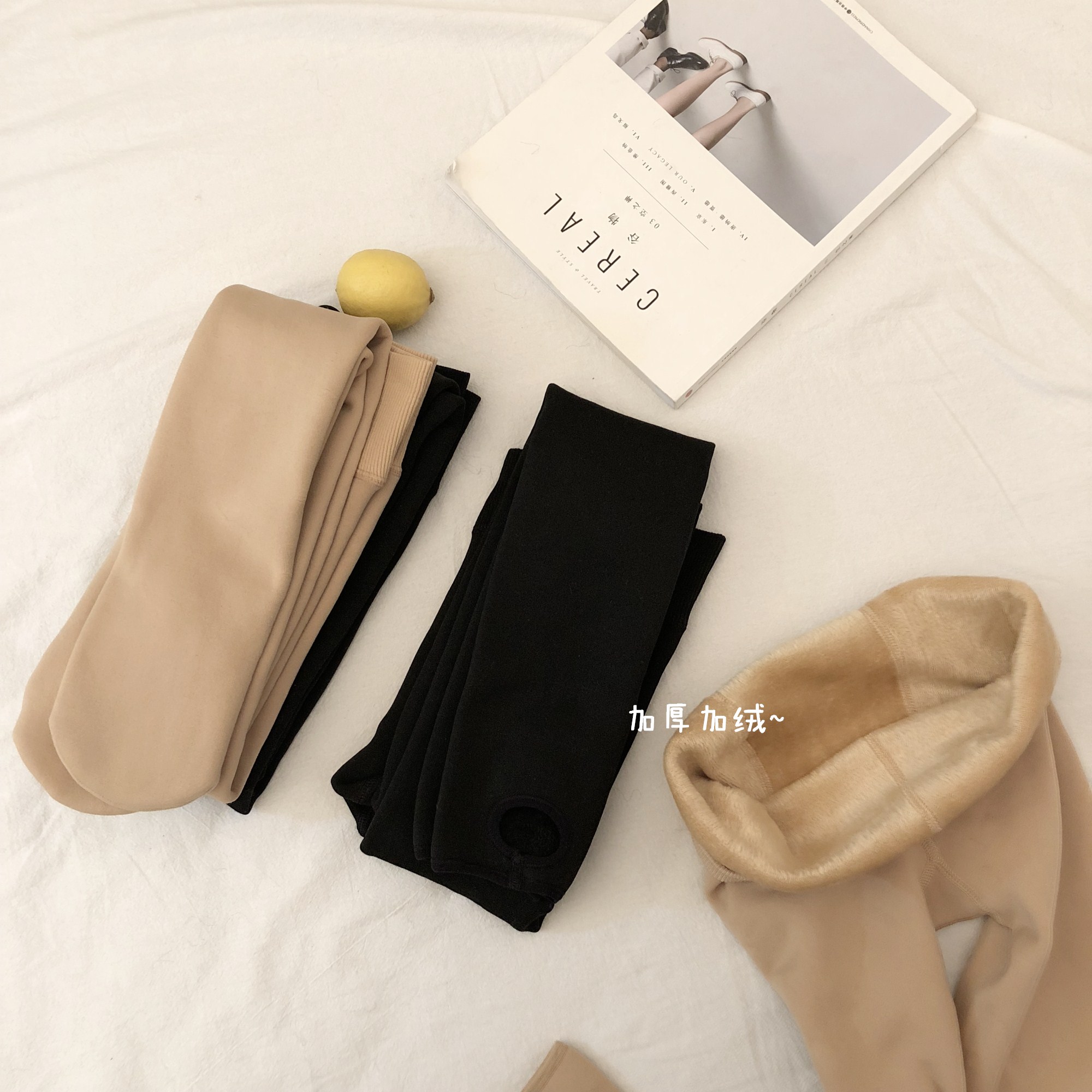/ 韓國新款時尚chic長襪百搭加絨加厚保暖純色連腳踩腳褲襪打底襪女
