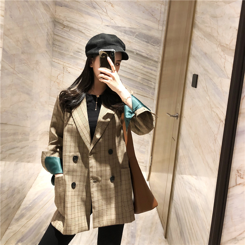 外套女春秋2018新款格紋西服學生寬松復古格子chic小西裝外套女潮