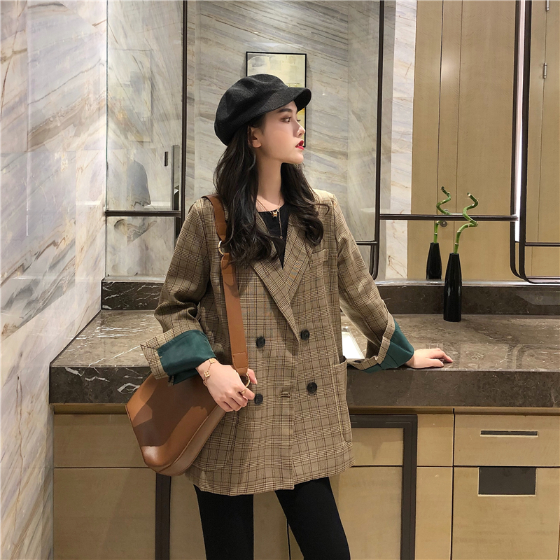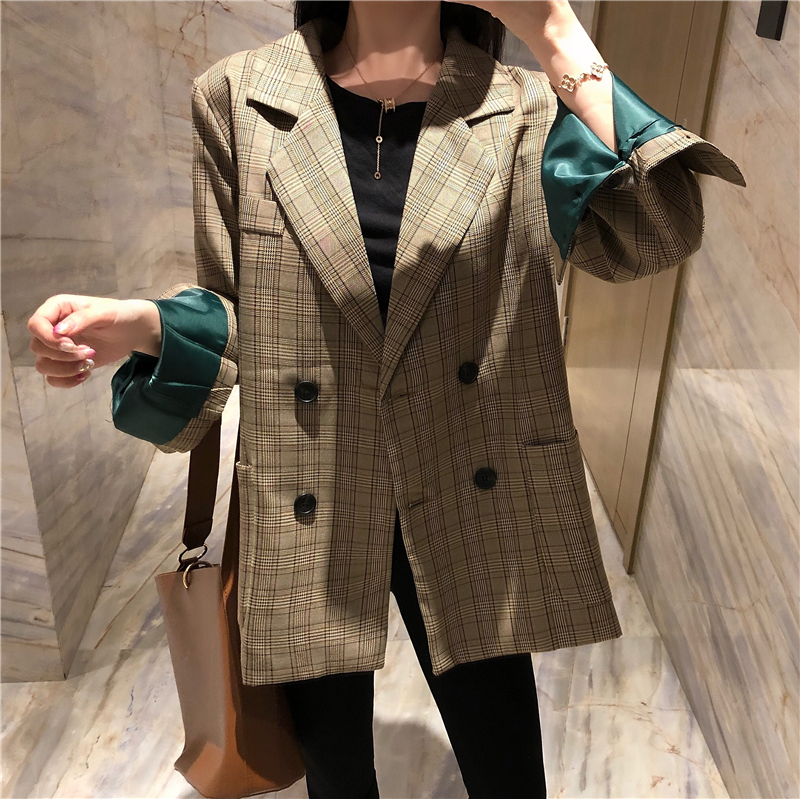 / 外套女春秋2018新款格紋西服學生寬松復古格子chic小西裝外套女潮