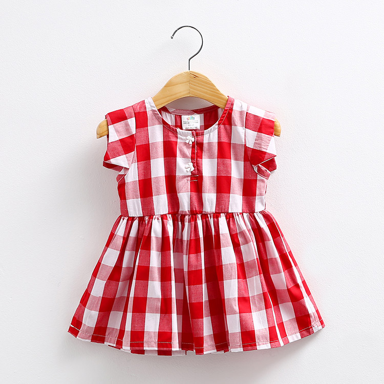 / 寶寶格子裙衫 夏裝新款韓版女童童裝 兒童飛袖T恤 潮tx-7061