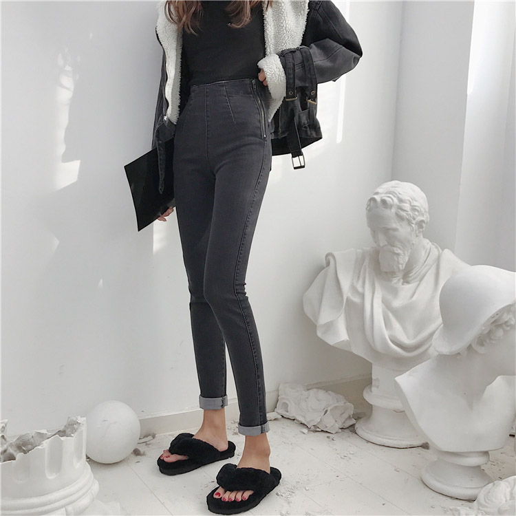 褲子2018新款韓國復古高腰顯腿長修身顯瘦百搭時尚牛仔褲鉛筆褲女