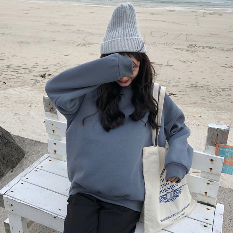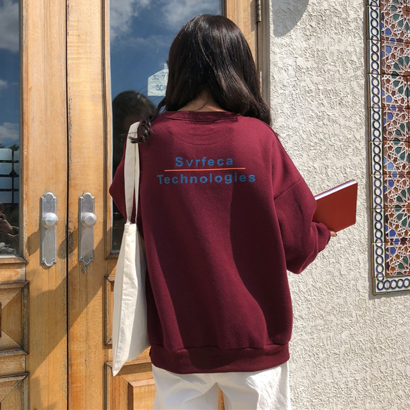復古寬松字母印花衛衣2018新款女秋冬裝圓領加絨時尚外套休閑上衣