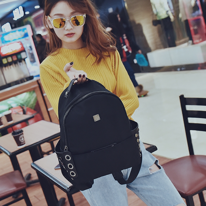/ 包包新款潮牛津布雙肩包女韓版學院風尼龍背包個性鉚釘小書包