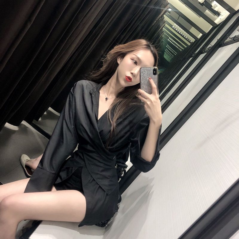 2018秋裝新款韓版顯瘦設計感襯衫顯瘦高腰短褲時尚套裝chic兩件套
