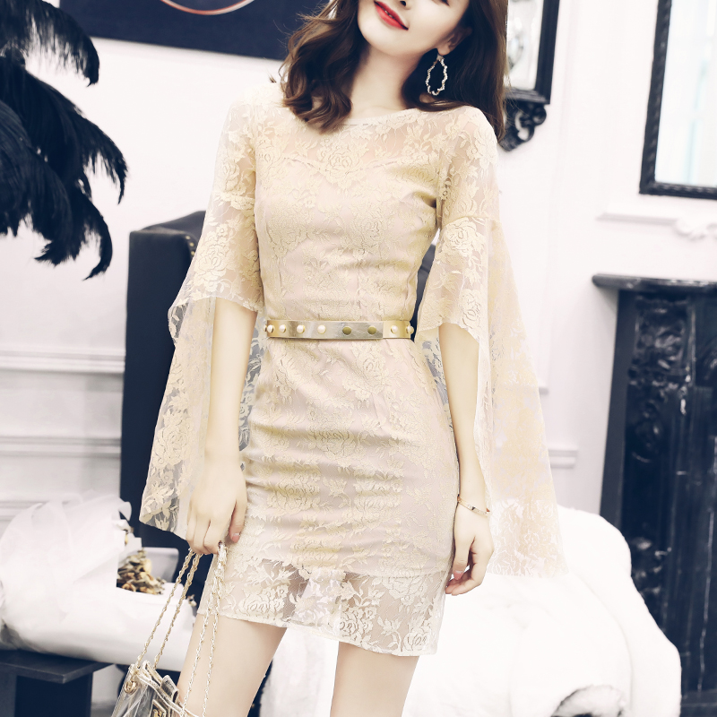 復古蕾絲連衣裙氣質女2018夏季新款中長款韓版收腰顯瘦少女心裙子