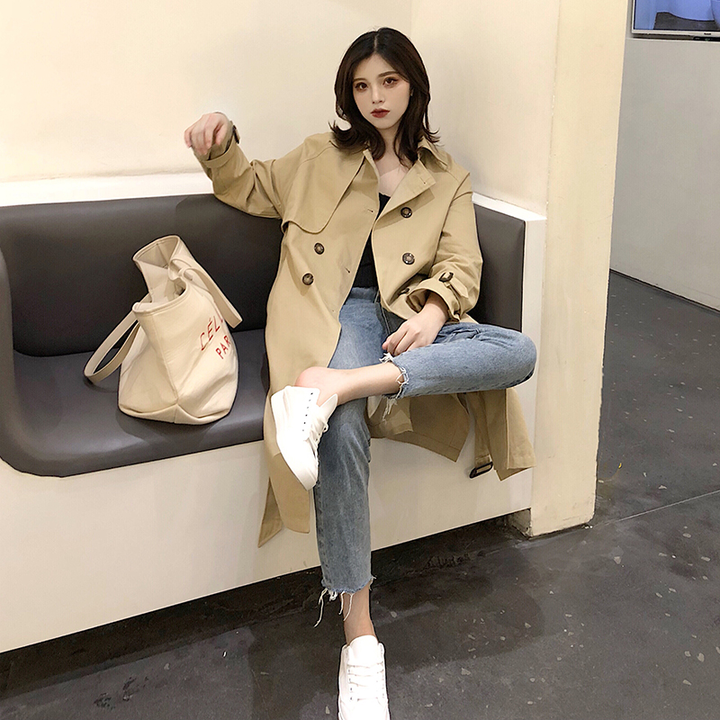 休閑風衣女中長款秋裝女2018新款韓版長袖外套氣質帥氣純色上衣潮