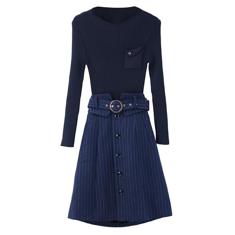 2018新款修身毛衣針織衫格子半身裙套裝女韓版顯瘦兩件套連衣裙潮