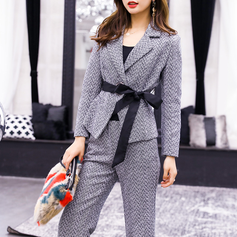 / 2018冬季新款女裝毛呢闊腿褲時尚顯瘦兩件套氣質女神范洋氣套裝潮