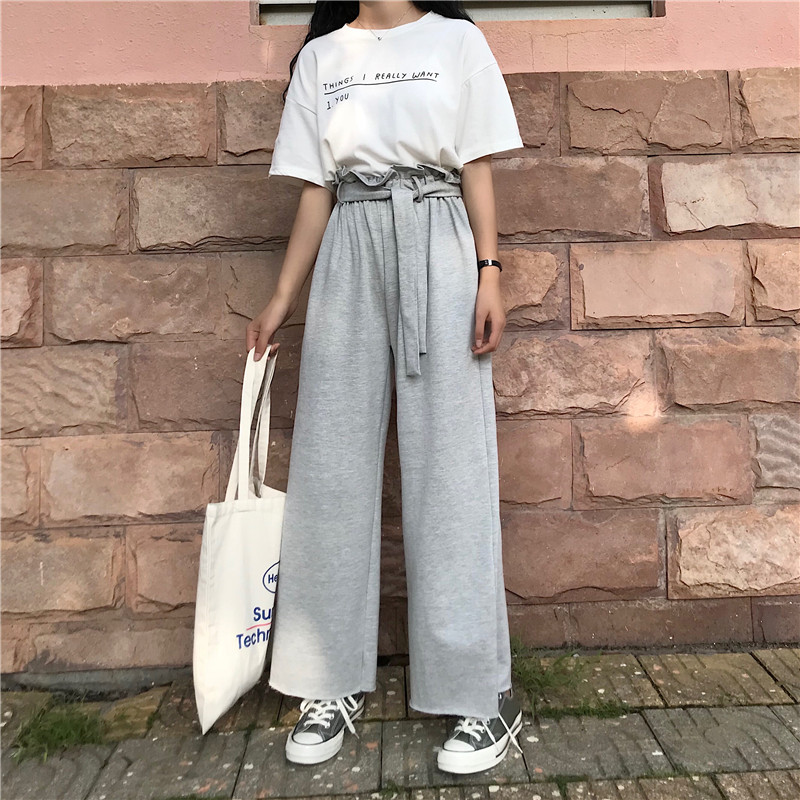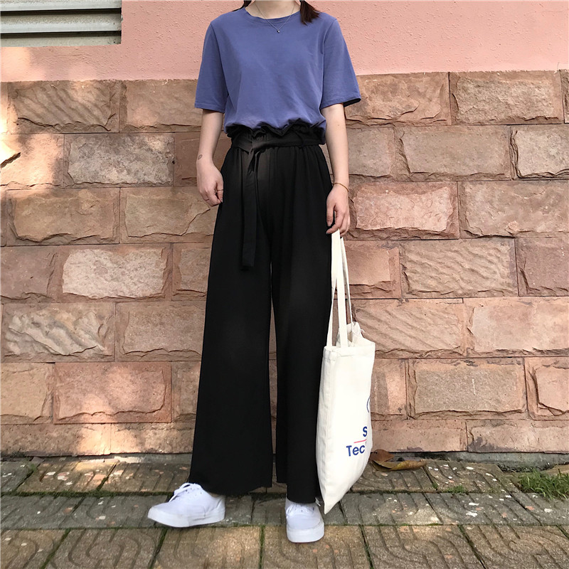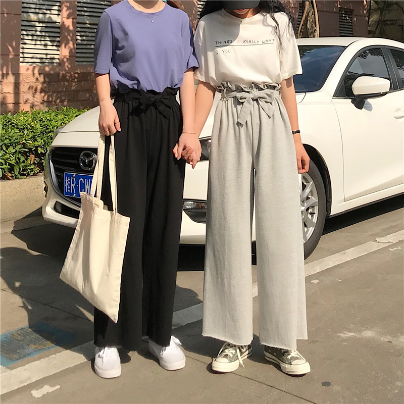 / 夏裝女裝韓版松緊腰闊腿褲九分褲寬松顯瘦休閑褲高腰直筒褲長褲潮