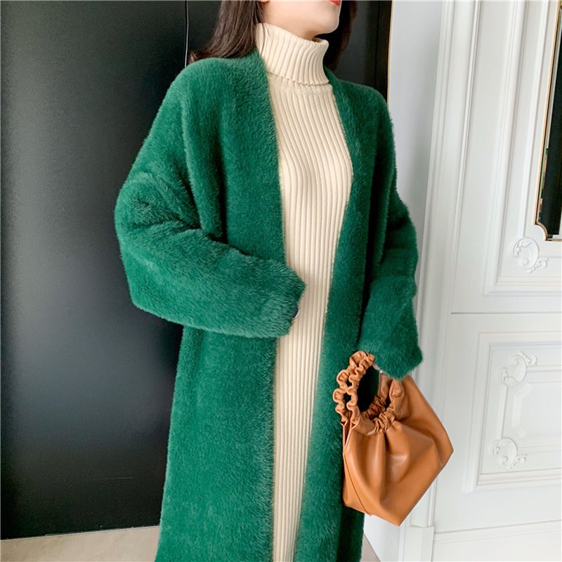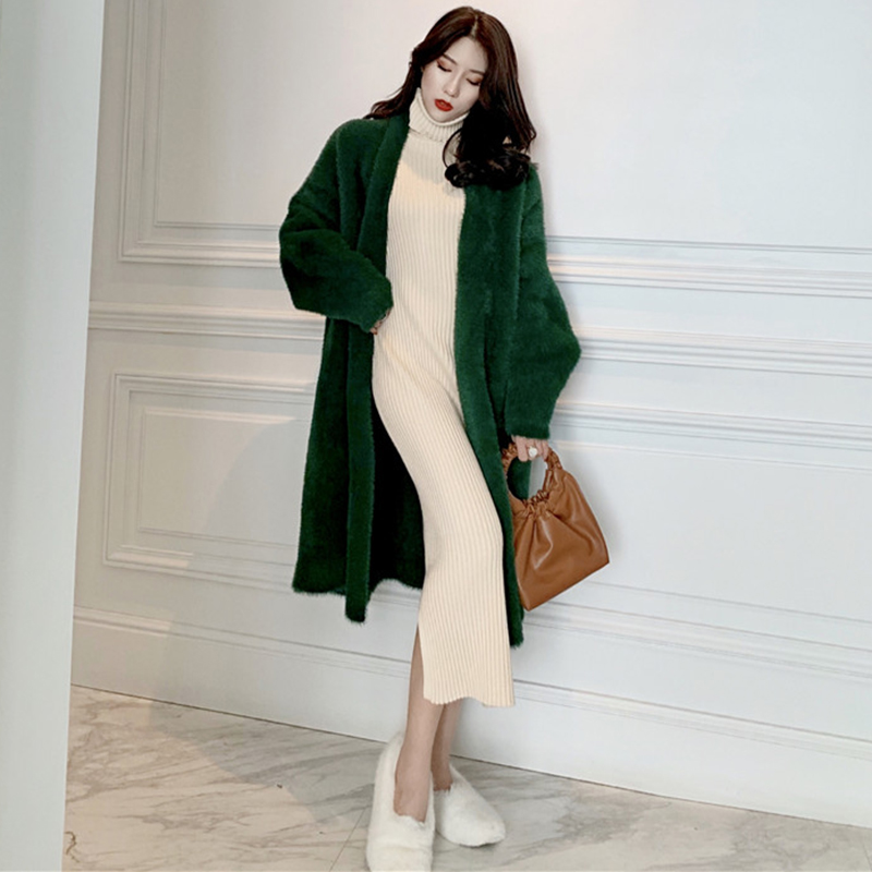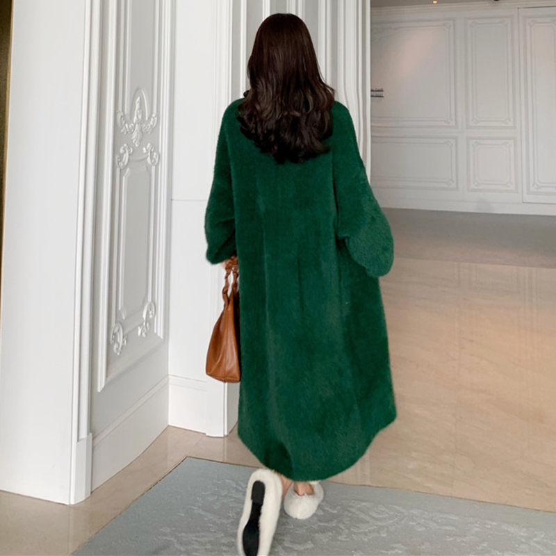 綠色仿貂毛長款外套|白色仿貂毛長款外套