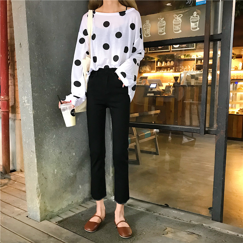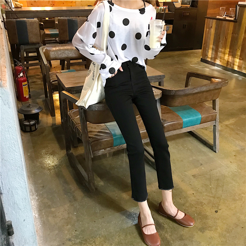 / 韓版時尚休閑九分彈力黑色小直筒高腰修身顯瘦牛仔褲女夏2018新款