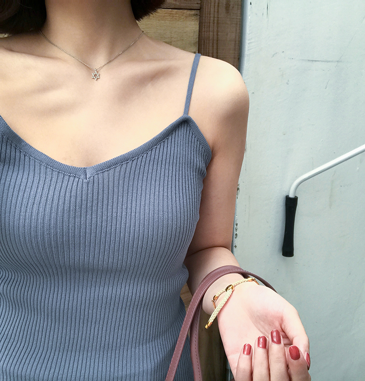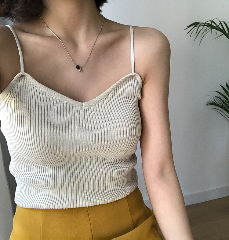 2018新款夏季韓版百搭純色性感V領打底針織吊帶背心女短款小吊帶