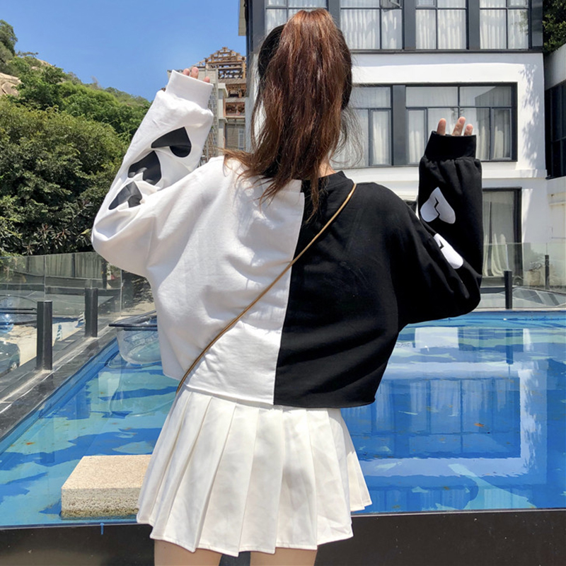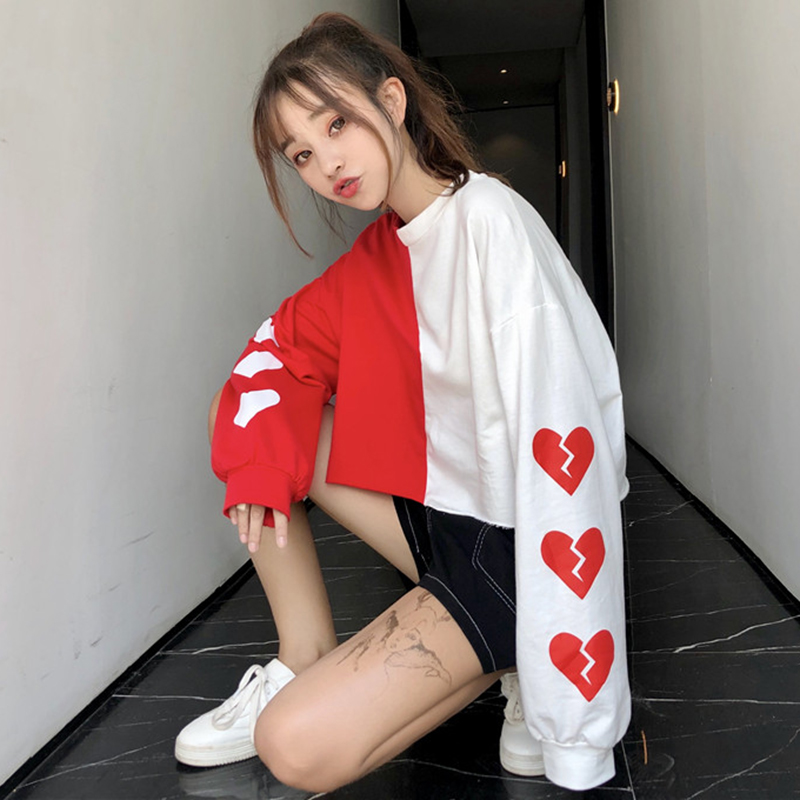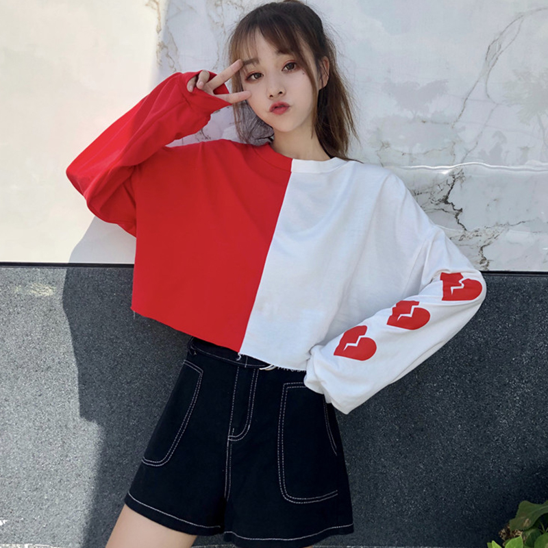 / 衣服2018新款流行外套拼色衛衣女秋韓版 寬松 百搭 長袖短款上衣