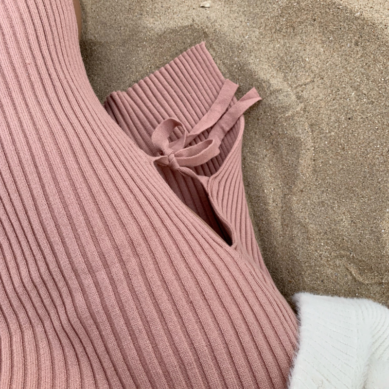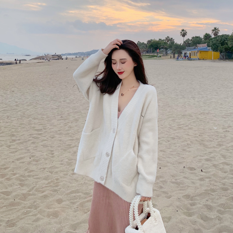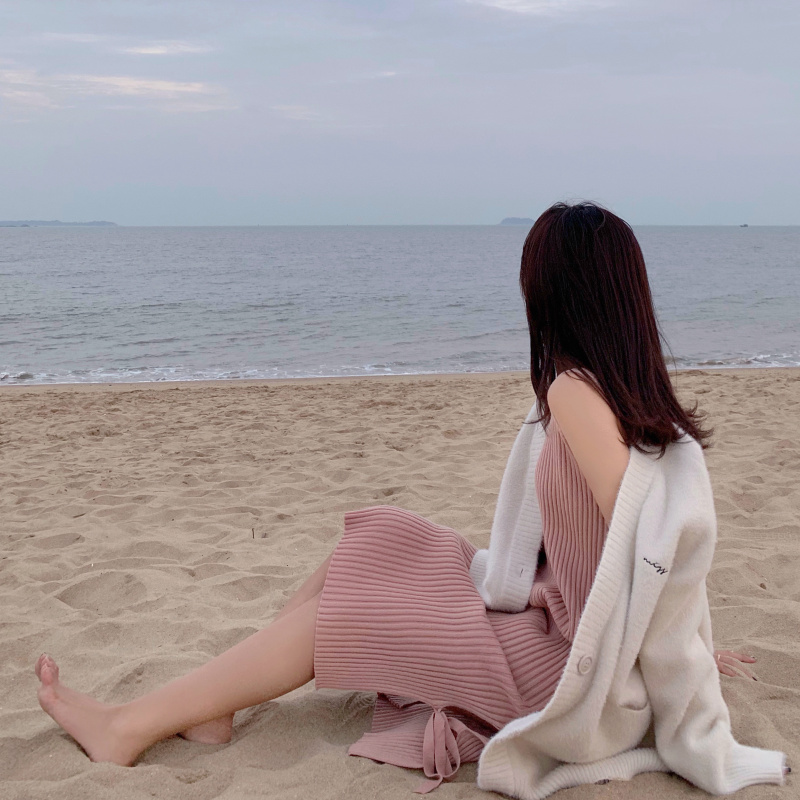 馬海毛網紅毛衣女2018新款針織開衫外套冷淡風針織吊帶連衣裙套裝