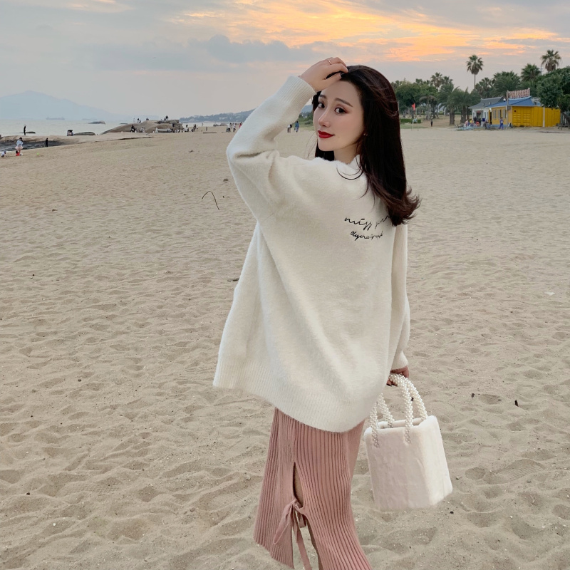 秋裝女2018新款套裝慵懶風寬松毛衣開衫+小香風銀絲半身裙兩件套