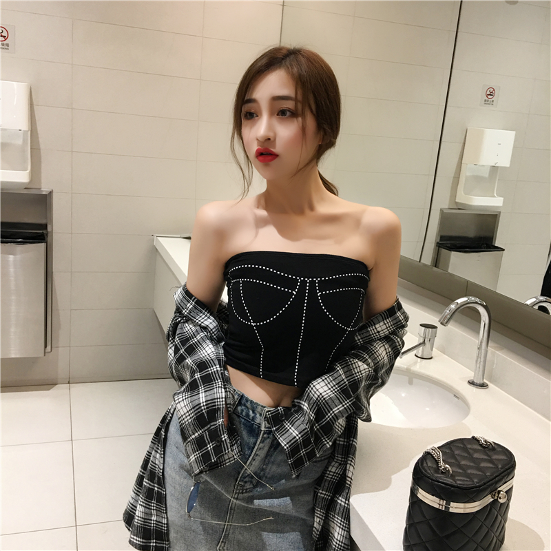 韓版秋裝女2018新款無袖背心百搭一字肩印花抹胸性感裹胸內搭上衣