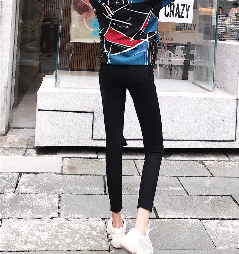 / 褲子女2018新款個性拉鏈膝蓋破洞時尚牛仔高腰緊身彈力九分小腳褲