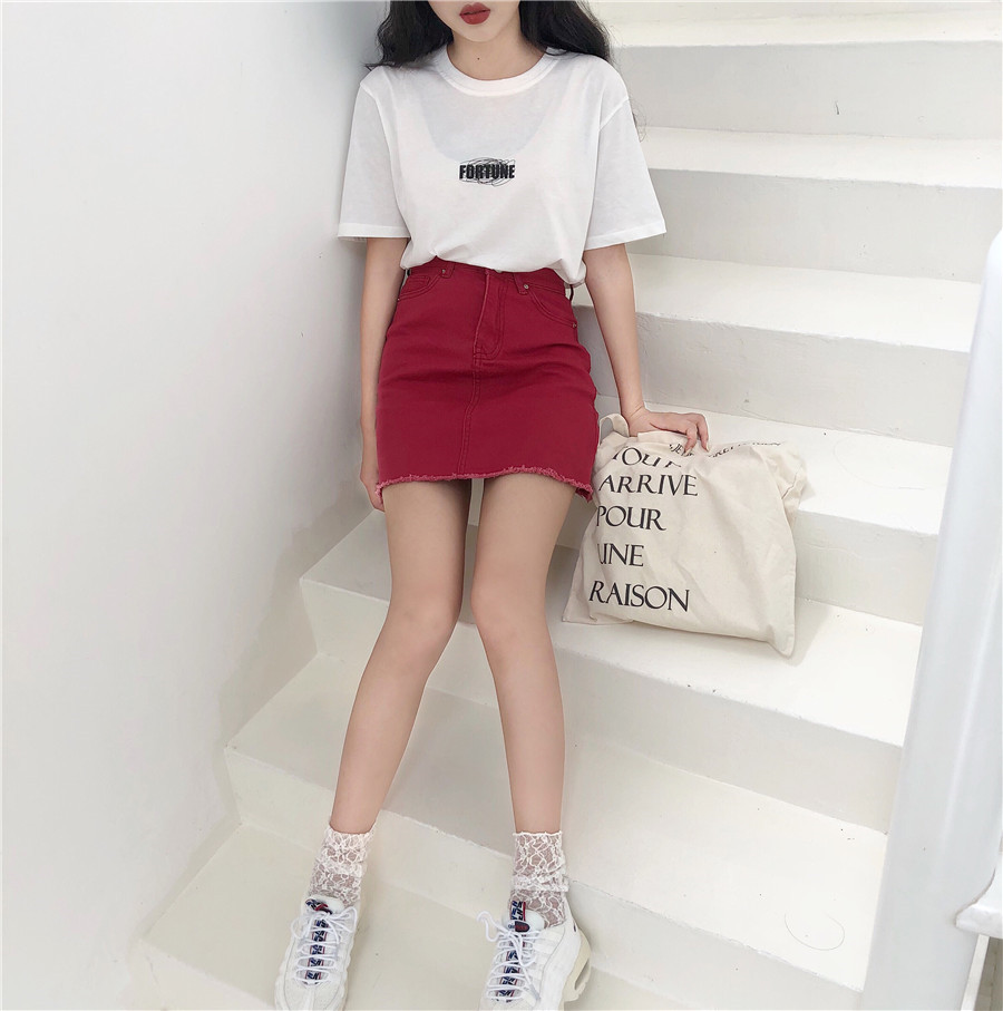 / 復古港味chic風休閑經典高腰顯瘦毛邊半身裙百搭牛仔短裙女夏季潮