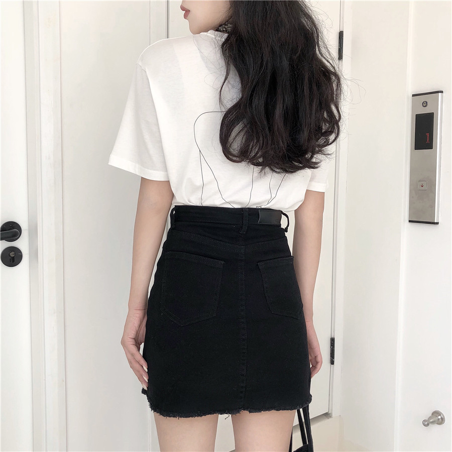 復古港味chic風休閑經典高腰顯瘦毛邊半身裙百搭牛仔短裙女夏季潮