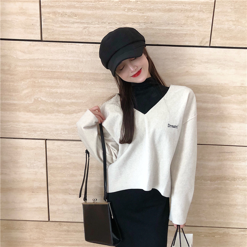 / 新款韓版毛呢套頭上衣高領背心彈力連衣裙女兩件套時尚套裝女裝潮
