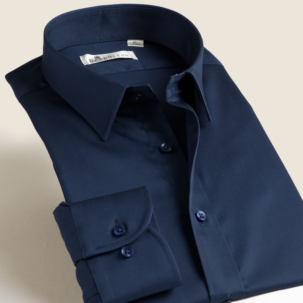 / 深海藏藍絲光棉男士小領襯衫長袖修身免燙寸衫春春款純色商務襯衣