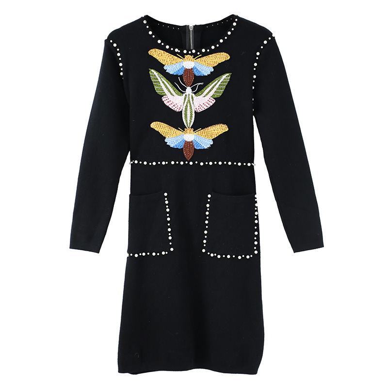 針織連衣裙早秋裝2018新款女裝氣質長款修身包臀釘珠重工一步裙子