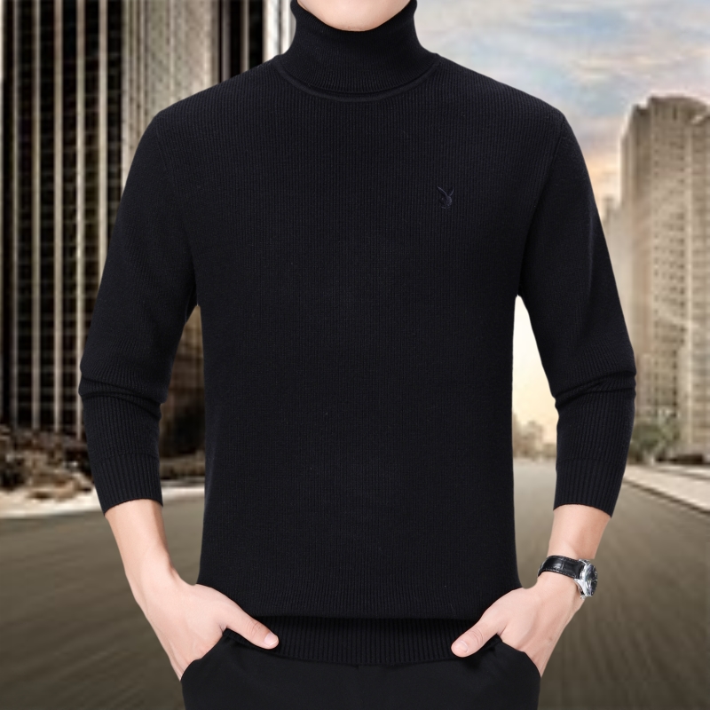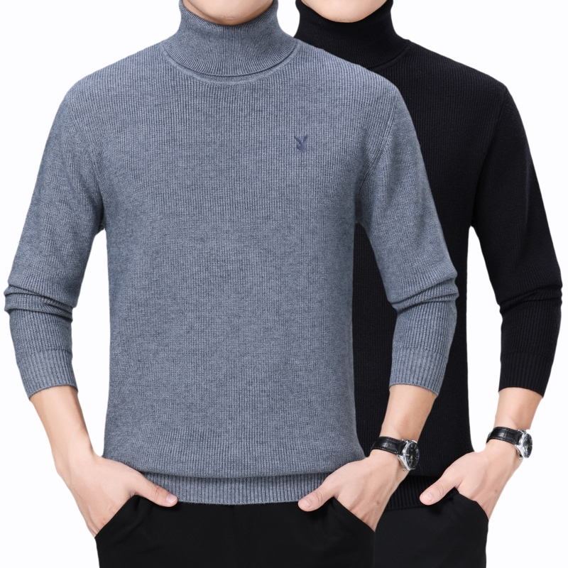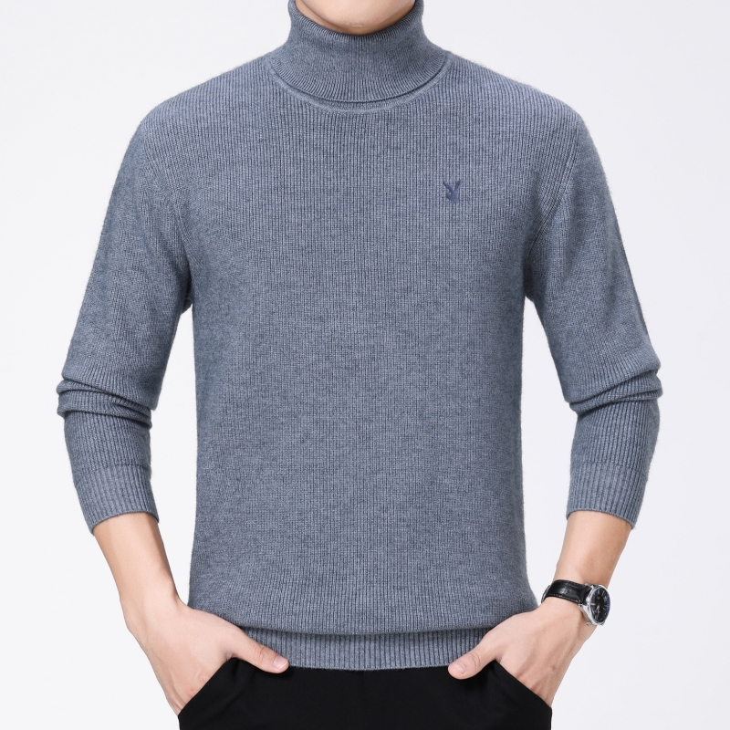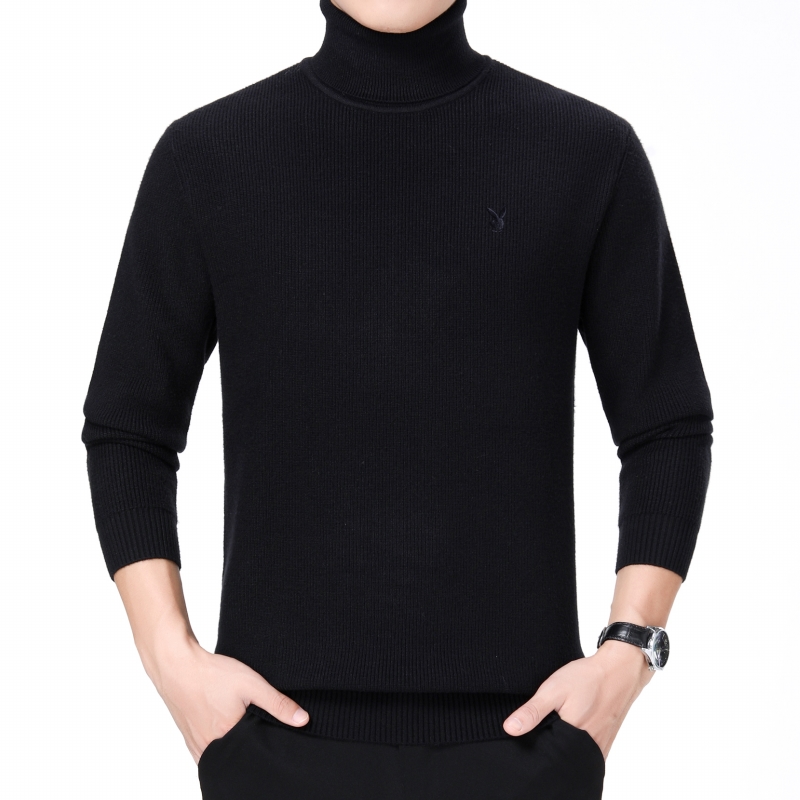 花花公子正品中年男士羊絨毛衣休閑男裝高領加厚純色羊毛衫冬裝