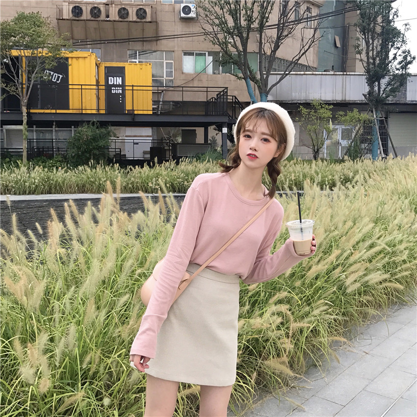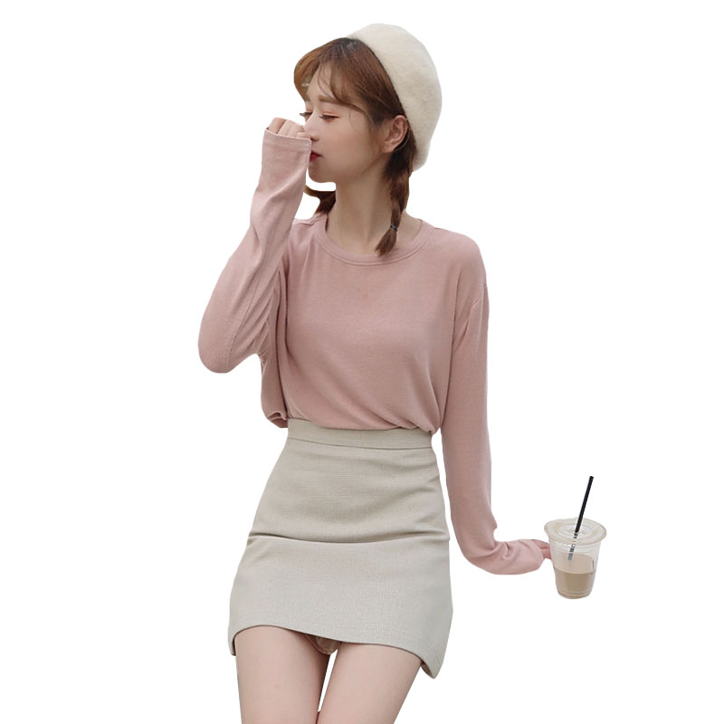 / 韓版時尚休閑套裝秋季女裝chic打底T恤上衣+高腰A字半身裙兩件套