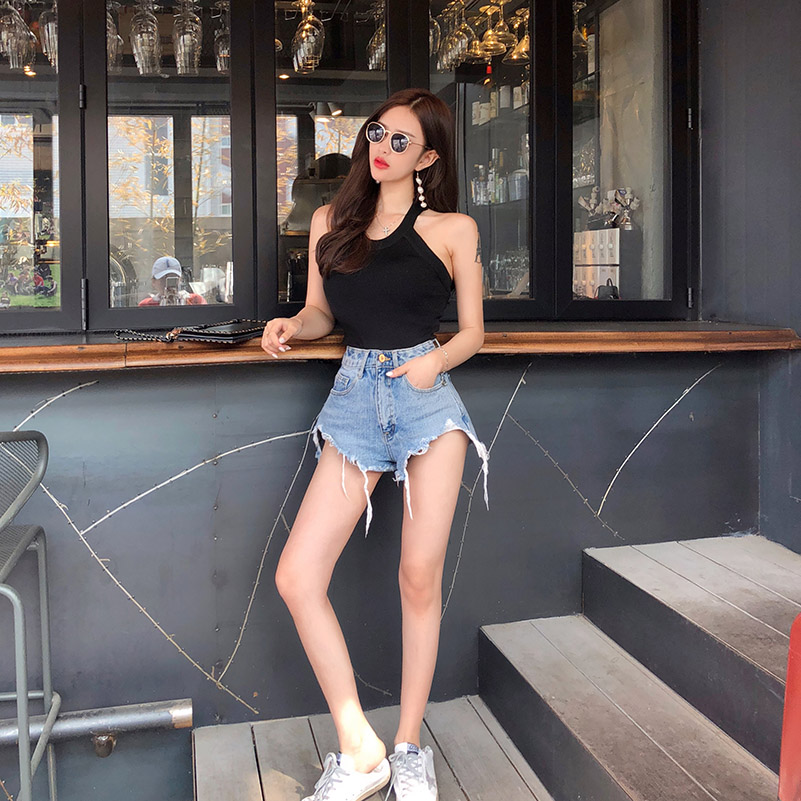 / 秋裝2018新款女韓國顯瘦掛脖式上衣氣質純色修身無袖打底針織背心