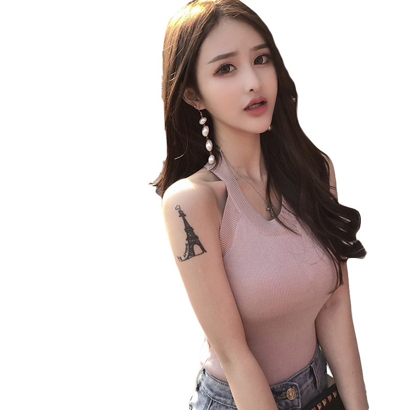 秋裝2018新款女韓國顯瘦掛脖式上衣氣質純色修身無袖打底針織背心