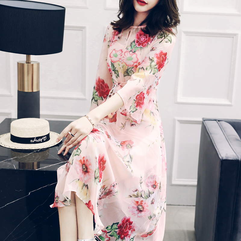/ S秀淑女氣質2018夏季新款超仙顯瘦吊帶小背心印花裙子套裝兩件套