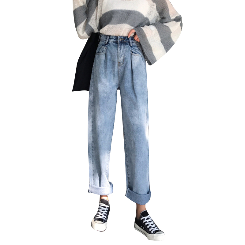 秋裝女裝韓版高腰寬松闊腿褲休閑直筒褲顯瘦九分褲牛仔褲學生長褲