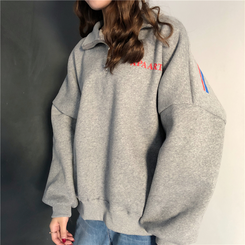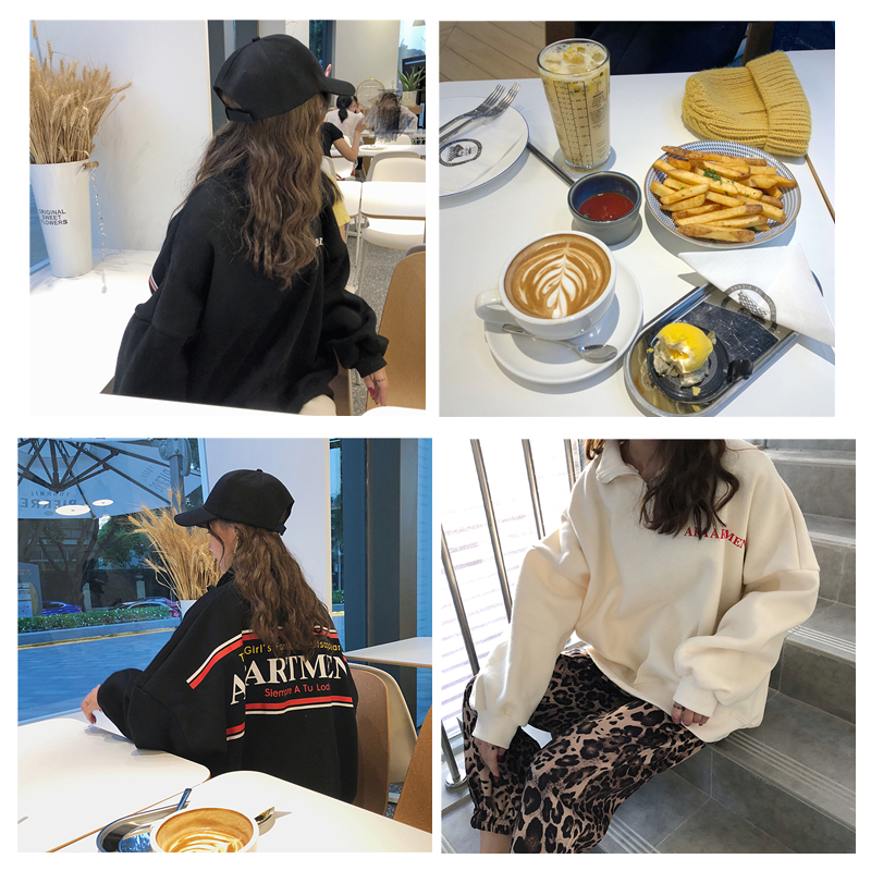 / 秋冬韓版原宿風寬松字母拉鏈翻領加絨加厚套頭超火衛衣上衣外套女