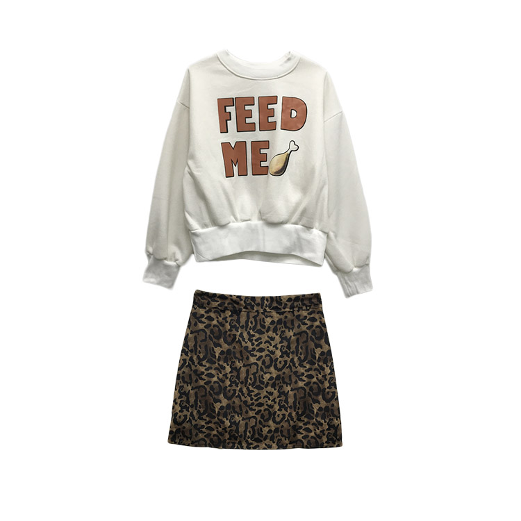 復古秋裝女2018新款套裝百搭字母印花衛衣女+百搭豹紋短裙兩件套