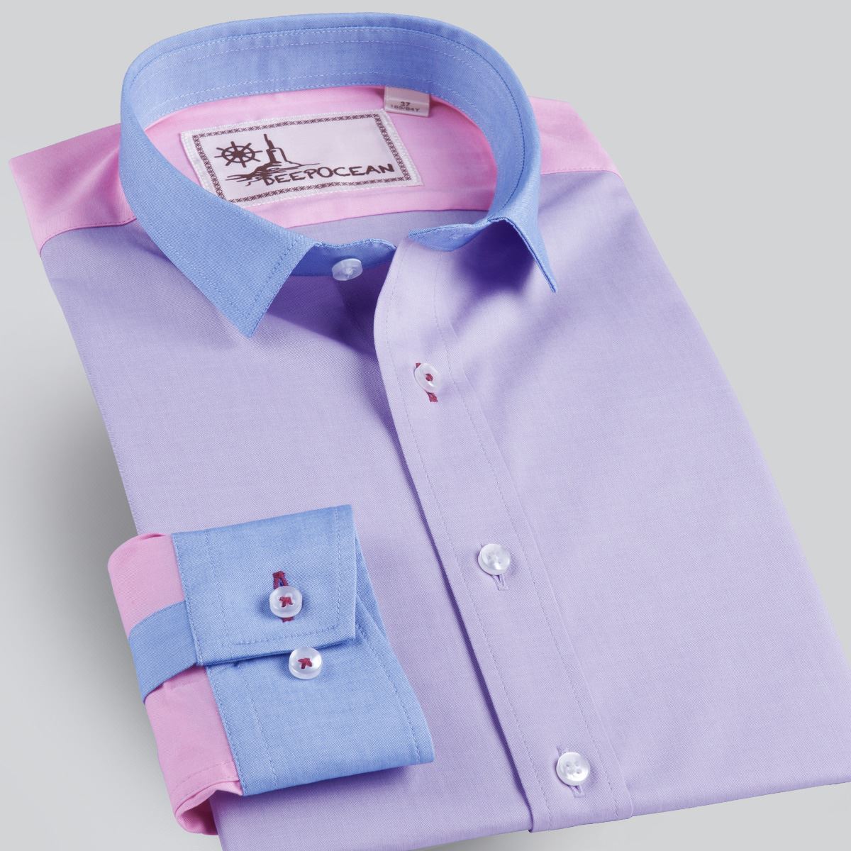 / 深海潮流拼色彩色男士長袖襯衫韓版修身襯衣純棉寸衫青年純棉男裝
