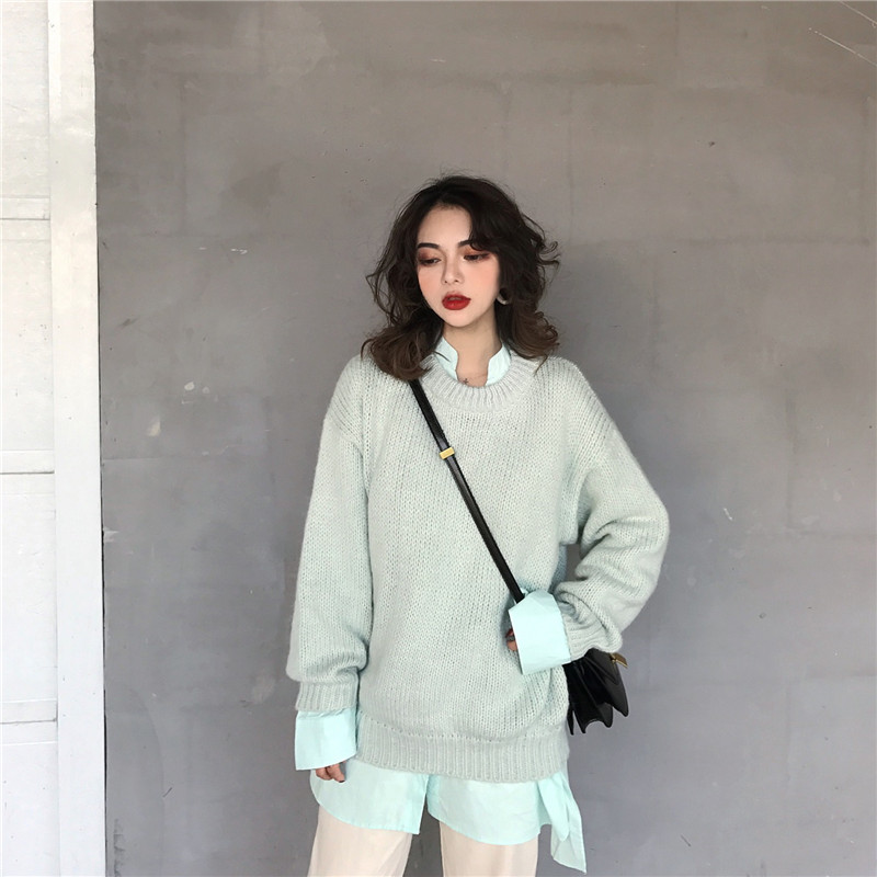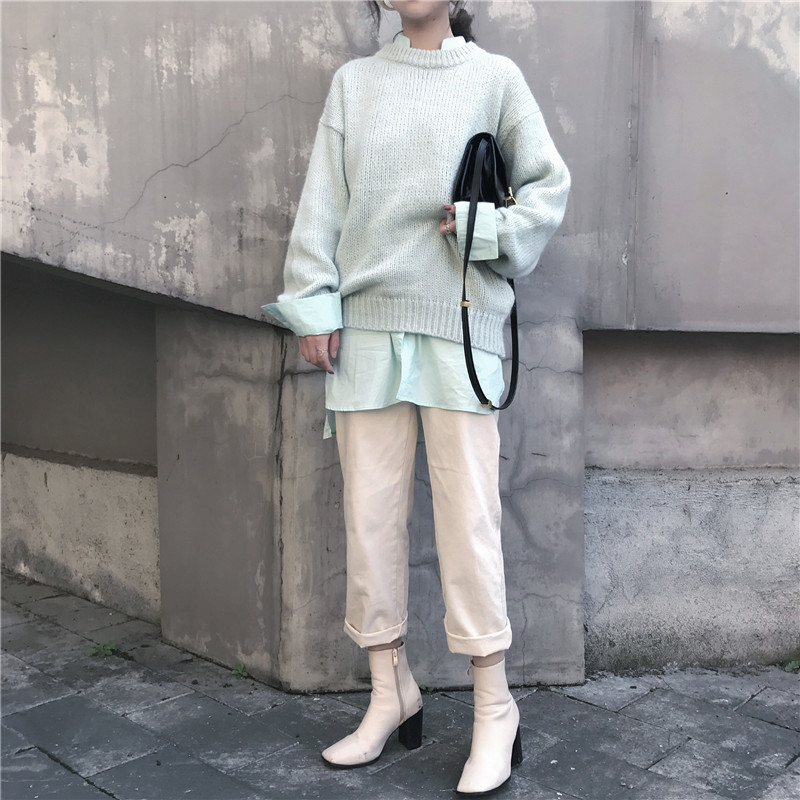 很獨特的清新感 吧毛衣搭在肩上跟披巾一樣搭配