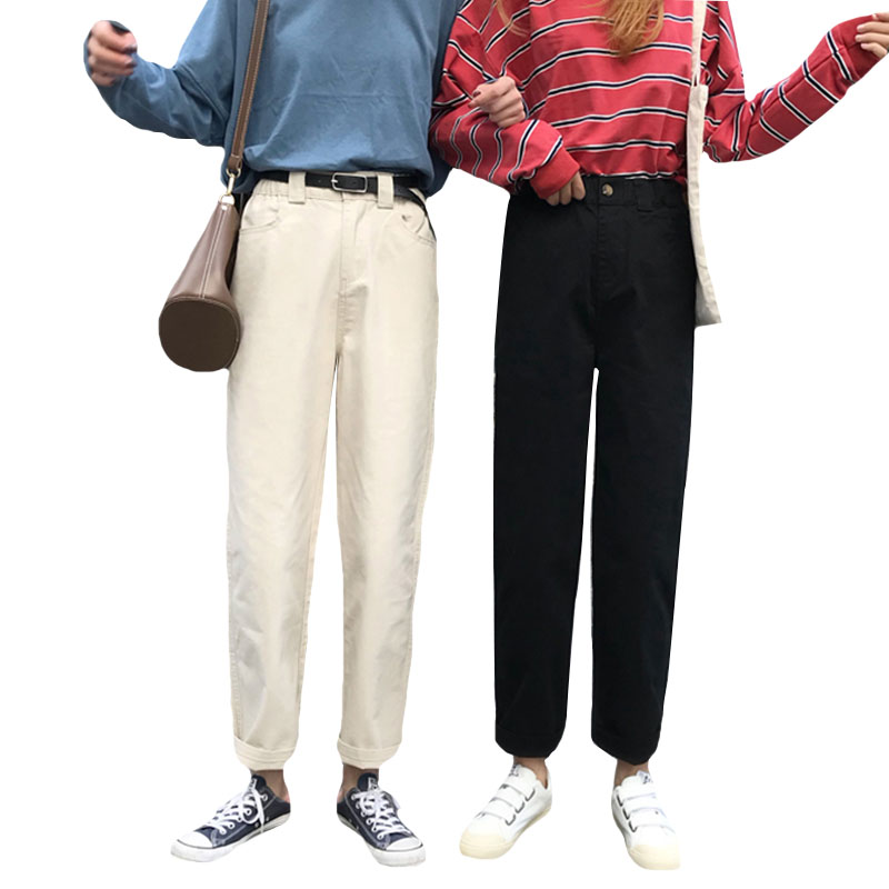 / 秋季女裝韓版松緊腰寬松復古休閑褲工裝褲子高腰直筒褲闊腿褲長褲