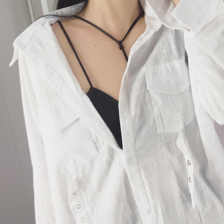 / 早春港味chic性感百搭小心機無鋼圈掛脖式內衣綢緞打底純色文胸女