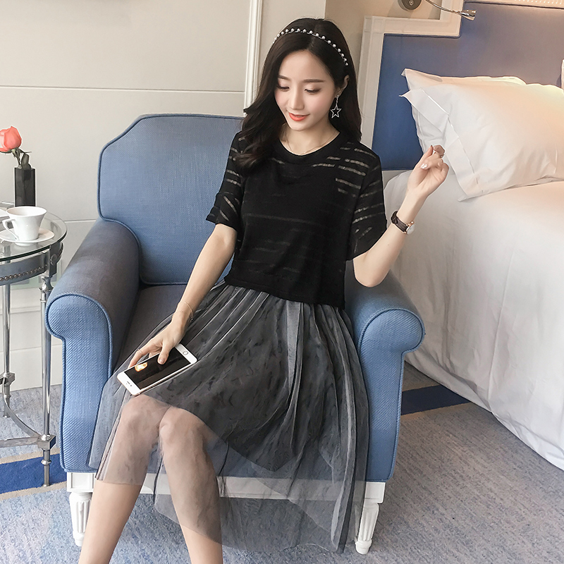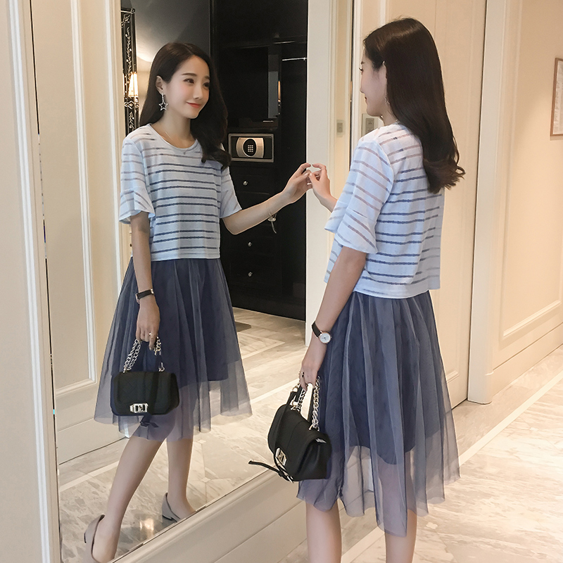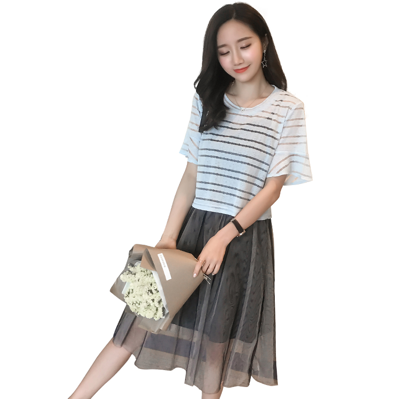 / 夏季新款女裝韓版罩衫吊帶裙兩件套中長款顯瘦短袖連衣裙套裝