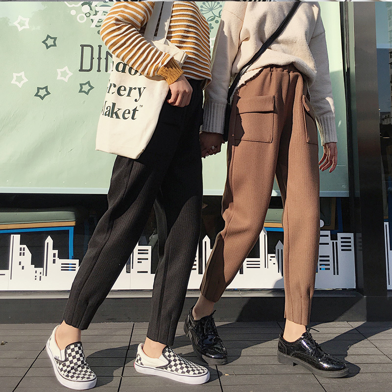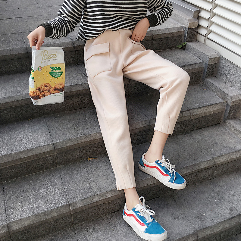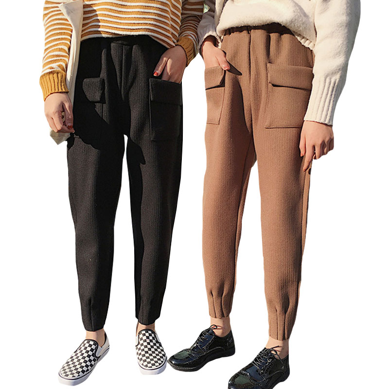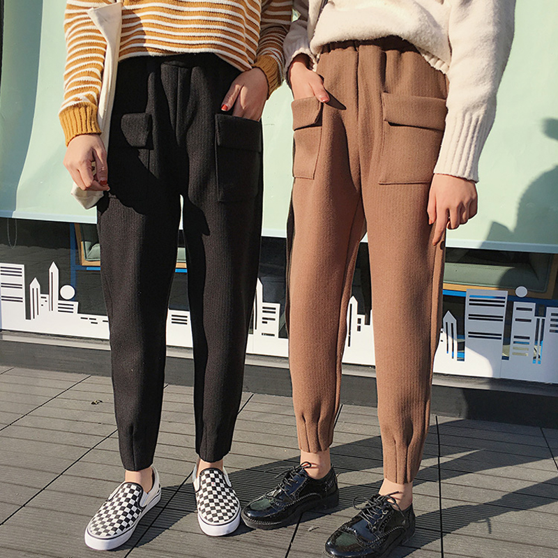 / 秋冬女裝韓版寬松加厚呢子休閑褲高腰九分褲直筒褲哈倫褲學生褲子