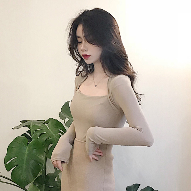 露鎖骨長袖打底衫秋裝女2018新款韓版chic修身短款黑色T恤上衣潮