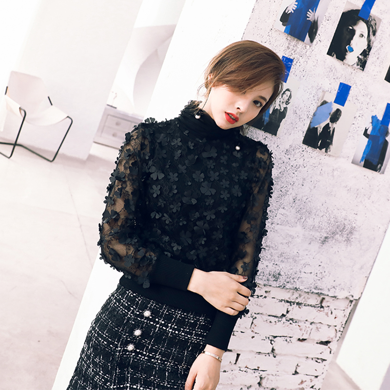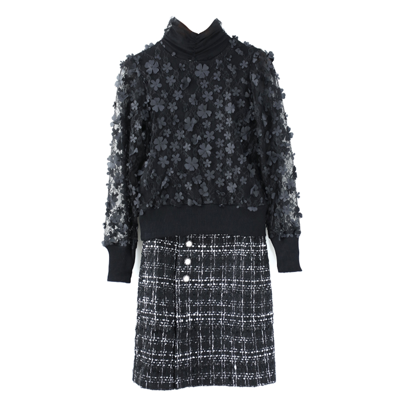 花朵上衣時尚套裝女秋裝2018新款氣質修身打底衫半身中裙兩件套女